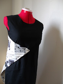 First I started to make the shift dress. After a few trial and error attempts I ended up making a basic pattern for a dartless shift dress. My first thoughts were to make it quite loose fitting but trying this out I found that this would distort the pictures of the Paris printed fabric so I decided on a tighter fit. In the end this dress will be very slimming as the triangles will bring in the waist and give you a great curvy shape. That's the plan anyway!